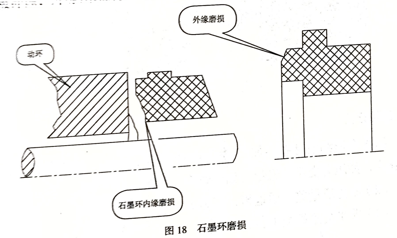 石墨環(huán)內(nèi)緣或外緣出現(xiàn)缺口式磨損,端面有明顯的磨痕,密封流漏