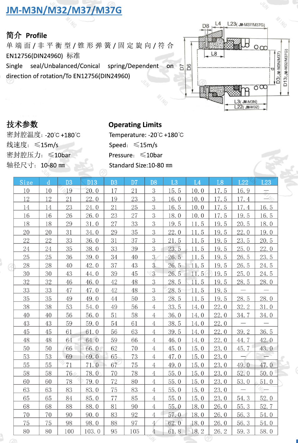 M3N系列的機械密封,結(jié)構(gòu)簡單,應(yīng)用廣泛,可靠性好。適用于清水泵,污水泵,潛水泵以及化工流程泵等。